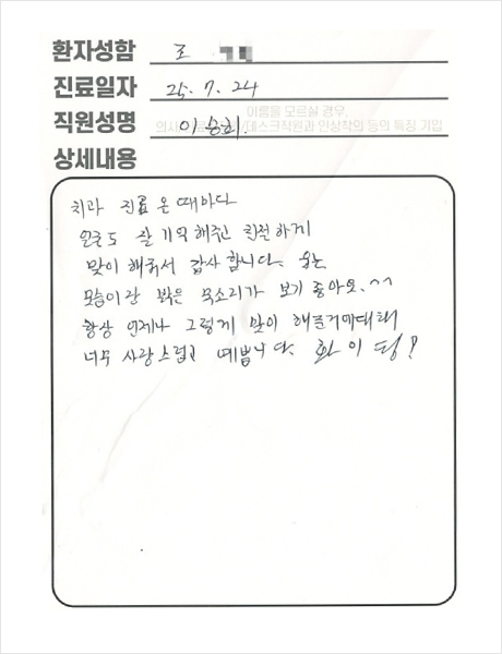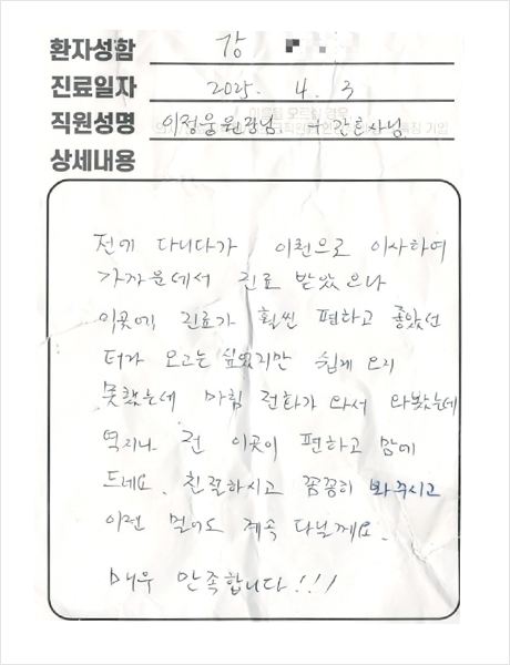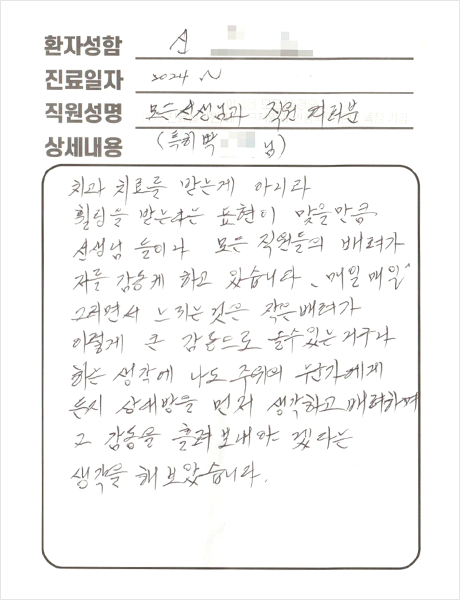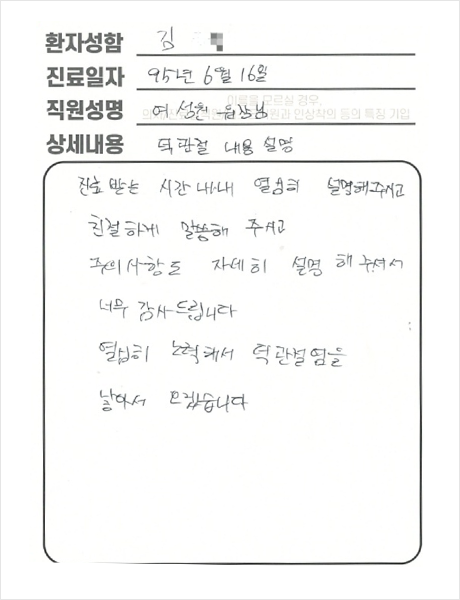 늘 낮은 자세로 환자분의 이야기에 귀 기울이고