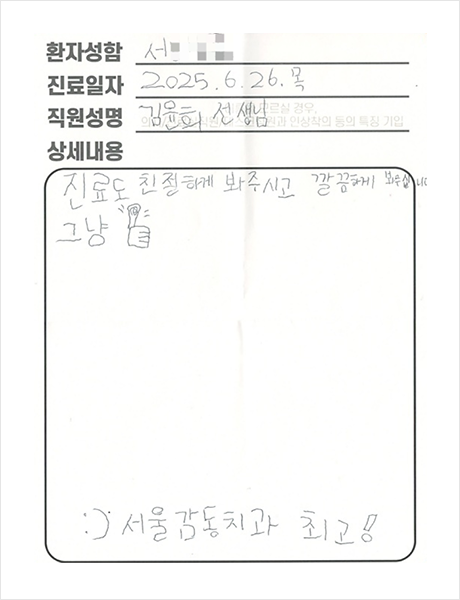 서울감동치과에서 치료받으신 환자분들이 자발적으로 남겨주신 후기입니다.